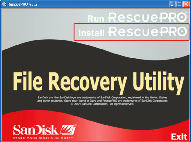 Po włożeniu do napędu optycznego instalacyjnego krążka z programem powinno się automatycznie pojawić okno dialogowe RescuePRO v3.2. W oknie kliknij Install RescuePRO.