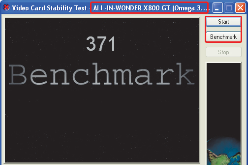 Przycisk Start uruchamia procedurę „wygrzewania” układu graficznego, tzn. obciąża układ graficzny. Zadaniem użytkownika jest ocena, czy tego typu działanie powoduje jakieś wady wyświetlania obrazu. To tzw. test stabilności karty, aby natomiast zmierzyć wydajność karty, kliknij Benchmark.