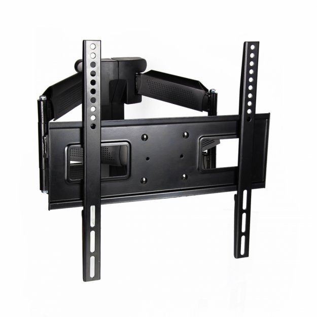 Płaski profil pozwala na montaż telewizora w odległości zaledwie 5,5 centymetra od ściany. Maksymalna odległość to z kolei aż 47 centymetrów. Ustawienie uchwytu można płynnie regulować w zakresie od -10 do +3 stopni w pionie i aż 120 stopni w poziomie. Co istotne, model ten pozwala na instalację także w rogu pomieszczenia.