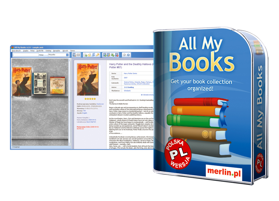 Najnowsza wersja programu All My Books zyskała dwie ważne cechy: polski interfejs użytkownika i obsługę popularnej polskiej księgarni internetowej merlin.pl