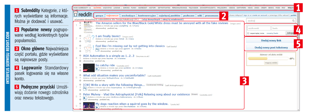 Lubisz czytać napływające ze świata informacje z różnych dziedzin, ale nie chcesz ich samodzielnie wyszukiwać? Odwiedź Reddita. Ten anglojęzyczny portal zawiera wiele rodzajów treści od przecieków nt. fabuły seriali i prowadzonych na żywo rozmów z celebrytami, po historie o duchach i zabawne zdjęcia.