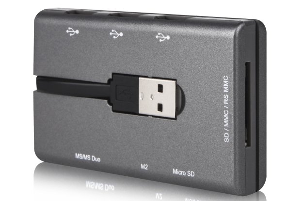 Interfejs USB 2.0 zapewnia szybkie połączenie z komputerem czy notebookiem. W przypadku modelu CNE-CMB1 producent zastosował hub USB (3xUSB). Co ważne wysuwane złącze USB nie zabiera dodatkowej przestrzeni, gdyż jest wkomponowane w obudowę akcesorium. Czytnik ten posiada także schowek na karty pamięci.