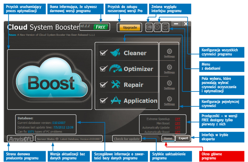 Jeśli chcesz mieć pełną kontrolę nad tym, co program robi w trakcie sprzątania i optymalizacji, przełącz się w tryb eksperta, który daje dostęp do wszystkich funkcji.