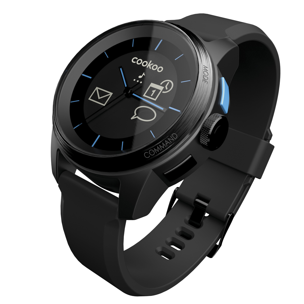 Cookoo nie wymaga ładowania, jest odporny na zarysowania oraz wodę – do 5ATM. Zegarek jest dostępny w dwóch kolorach – białym i czarnym.