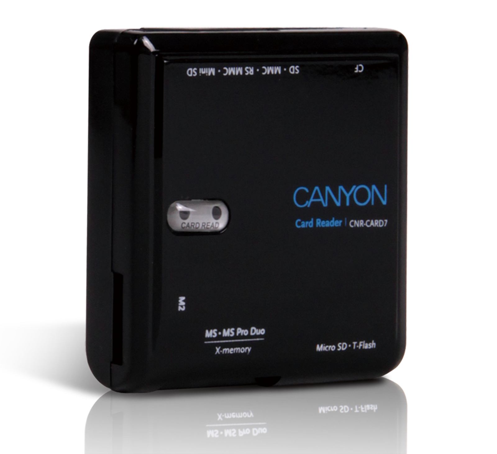 CNR-CARD5,6,7 to seria nowych czytników kart marki Canyon. Te niewielkie urządzenia dzięki swojej specyfice pasują do większości dostępnych na rynku kart pamięci, z uwzględnieniem kart SD o dużej pojemności. Obsługiwane formaty to między innymi: SD/MMC/MicroSD/SDHC. Dodatkowo czytniki działają w technologii plug-and-play, więc nie ma konieczności ściągania dodatkowych sterowników.