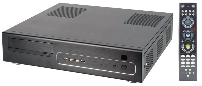 Z przodu obudowy wyprowadzono dwie kontrolki, gniazda USB, FireWire i złącza audio. Trzeba przyznać, że porty te nieco psują wrażenie, bo cała obudowa jest czarna, a porty białe. Za to dużym plusem jest pilot zdalnego sterowania w zestawie, a także odbiornik podczerwieni fabrycznie zainstalowany we wnętrzu. Obudowa jest też wyposażona w dwa niewielkie, bardzo ciche wentylatory, a także specjalne gumki do wyciszenia dysków twardych.