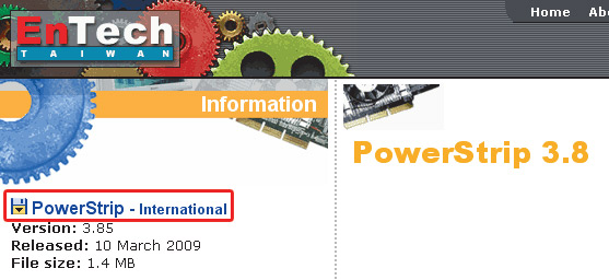 Jeśli nie masz programu, możesz go pobrać ze strony producenta, wpisując adres www.entechtaiwan.com/util/ps.shtm i klikając link PowerStrip – International po lewej stronie okna.