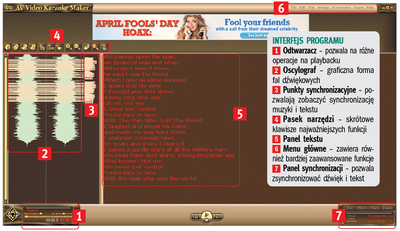 Programy do karaoke zwykle mają wspólną wadę: zamknięta lista opracowanych utworów ogranicza nasze możliwości do najbardziej popularnych piosenek. Video Karaoke Maker (program można pobrać z serwisu PC Format Programy) pozwala zrobić plik karaoke ze wszystkiego, również z utworów szerzej nieznanych i nieobecnych na playlistach. Dzięki tej prostej aplikacji możesz stworzyć karaoke twórczości swojego ulubionego wykonawcy, przygotować zestaw specjalnie na jakąś imprezę, dobierając repertuar na konkretną okazję. Pokażemy, jak przygotować materiały, jak je zsynchronizować i stworzyć z nich spójny plik oraz jak je przechowywać na przyszłość.
