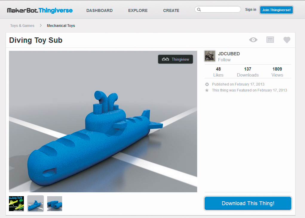 Średniej wielkości domowa drukarka 3D. Można z jej pomocą wydrukować obiekty o wielkości 28x15x15 cm z rozdzielczością dochodzącą do 0,1 mm. Jedna szpula z plastikiem (50 dol.) pozwala na wydrukowanie obiektów o łącznej masie 1 kg. Cena: 2200 dol.