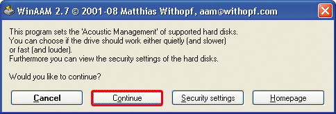 Jeżeli zobaczysz komunikat No ATA disk with 'Acoustic Management' found! oznacza to, że masz w komputerze dysk twardy, którego parametrów pracy nie można zmieniać (jak w przypadku dysków Seagate).