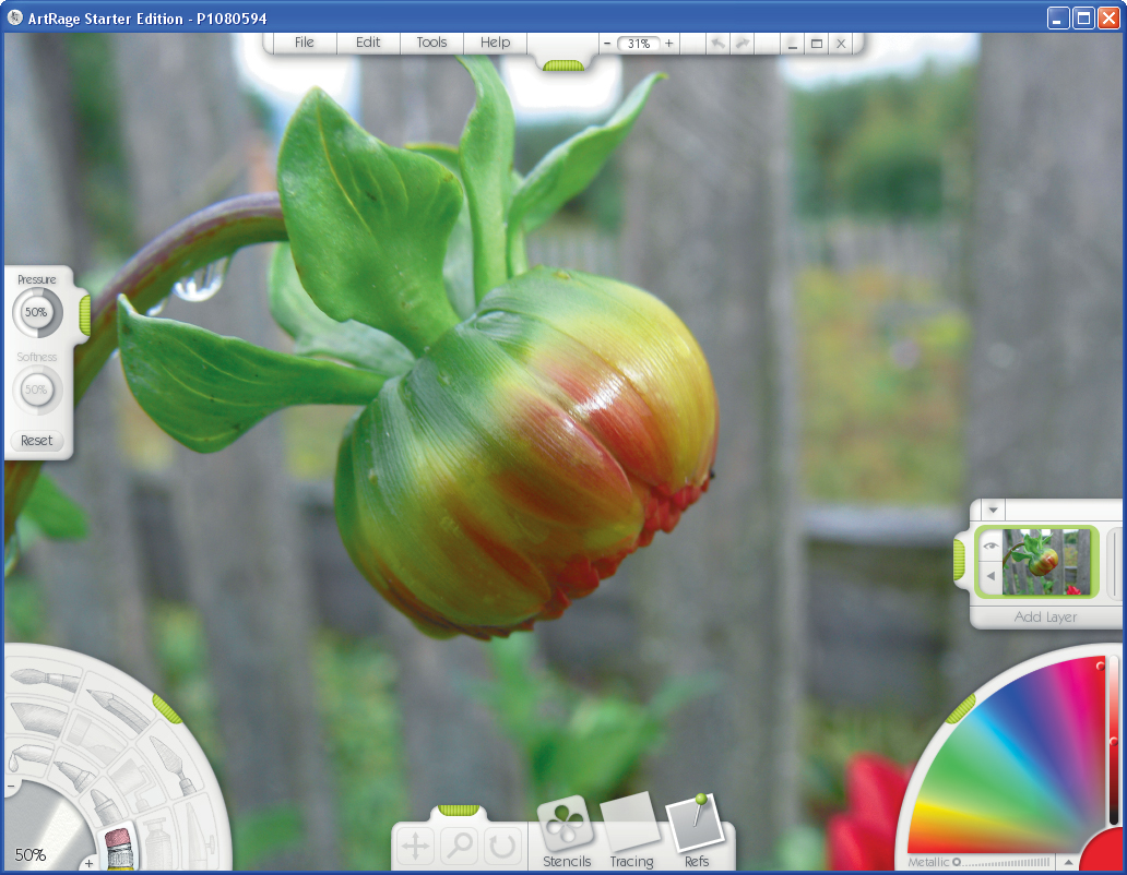 Ciekawy program graficzny służący do malowania obrazów, ArtRage, pozwala stworzyć dzieło całkowicie własne lub oparte na bazie wczytanego jako tło zdjęcia. Można korzystać z wirtualnych pędzli, ołówków, kredy, pisaków i kredek.