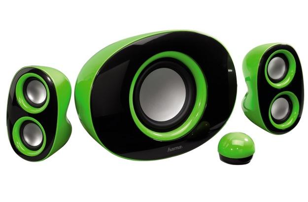 Każdy z zestawów składa się z 2 głośników szerokopasmowych o zakresie częstotliwości 135 Hz – 20 000 Hz oraz mocy 18 W, subwoofera – 25 Hz – 210 Hz, a także przewodowego pilota do regulacji głośności. Głośniczki Hama 2.1 White Orca posiadają futurystyczny czarno-biały wzór, zaś Green Ecko oferowane są w krzykliwym zielonym kolorze. Ceny obu zestawów są identyczne i wynoszą 249 złotych.