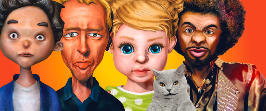 Zdjęcie zostało już wybrane i wczytane, animacje i dźwięk zostały wstępnie dodane. Pora zająć się szczegółami – animowaną postać możesz zmodyfikować, zmieniając wygląd elementów twarzy, np. ust czy oczu. Te i inne elementy znajdziesz w prawym zasobniku.