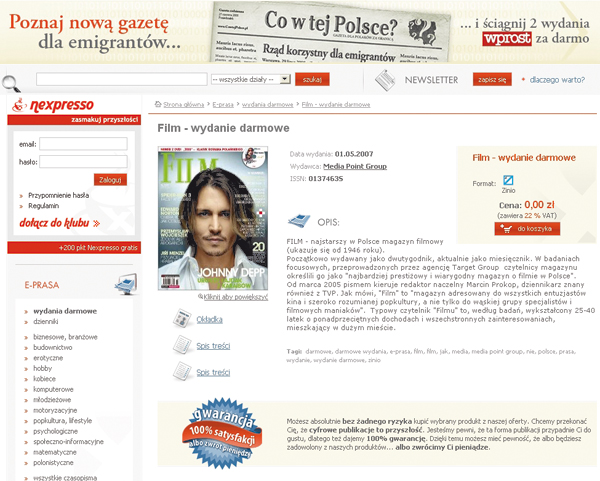 Pobrane pliki można przenosić między komputerami. Jeżeli pobrałeś publikację w formacie ZINIO, musisz mieć połączenie z internetem. Należy pamiętać, że gazetę w formacie ZINIO można przenieść 3 razy, potem trzeba skontaktować się z biurem obsługi. Warto także zapisać się do klubu Nexpresso, aby za każde zakupy otrzymywać punkty, które można później zamienić na darmowe zakupy.