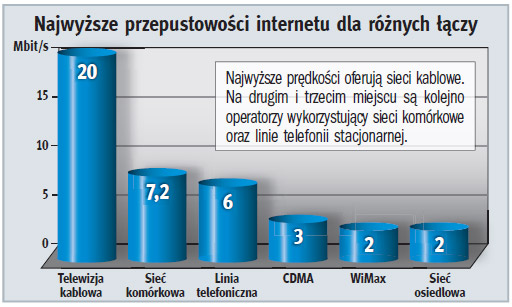 Niestety, często w pakiecie są dostępne tylko niektóre prędkości łącza, oferowane jako pojedyncza usługa. Tak jest np. w sieci Vectra, gdzie w pakiecie można zakupić jedynie 1 Mb/s. A prędkości oferowane w sieciach kablowych należą do najwyższych skierowanych do klientów indywidualnych. Przykładowo w UPC najszybsze oferowane łącze ma przepustowość aż 20 Mb/s. Ponadto w niektórych sieciach kablowych, np. Aster, prędkość jest zwiększana dwukrotnie w godzinach nocnych. Taki zabieg stosują także niektórzy operatorzy sieci radiowych i osiedlowych.