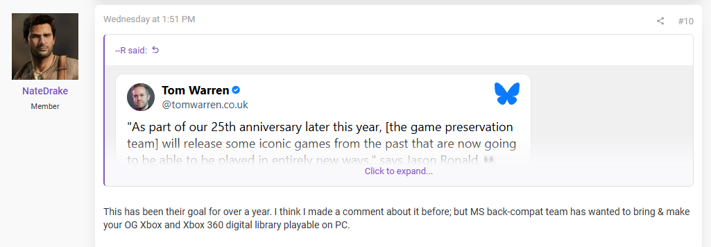 Jeden z leakerów mogących pochwalić się pokaźnym dorobkiem na koncie, niejaki Nate The Hate (w tym konkretnym przypadku przedstawiający się jako NateDrake), napisał, iż umożliwienie emulacji tytułów z oryginalnego Xboksa i Xboksa 360 na Windowsie jest celem Microsoftu już od ponad roku.