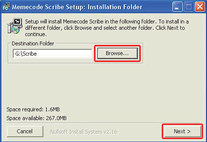Uruchom instalator z płyty dołączonej do PC Formatu. W pierwszym oknie kliknij przycisk Browse i wskaż swoje przenośne urządzenie, aby zlokalizować folder i.Scribe na pamięci przenośnej. Kliknij przycisk Next.