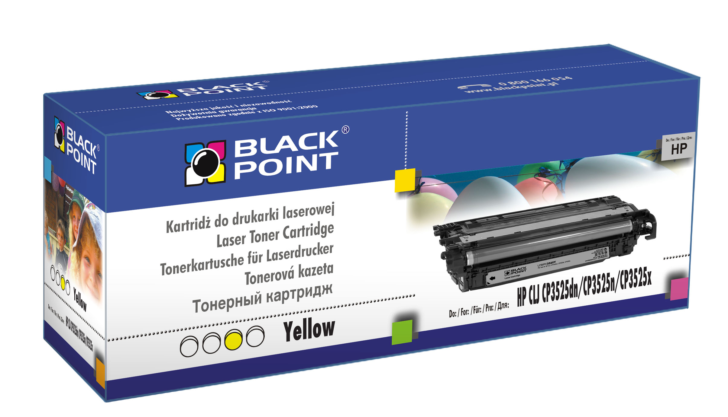 Komplet jest w pełni kompatybilny z drukarkami HP CLJ: CP3525dn, CP3525N i CP3525x. Kaseta Black Point z czarnym tonerem (LCBPH3525Bk) pozwala na wydrukowanie 5000 stron, zaś kasety z kolorami magenta (LCBPH3525M), cyjan (LCBPH3525C) i yellow (LCBPH3525Y) po 7000 stron każda.