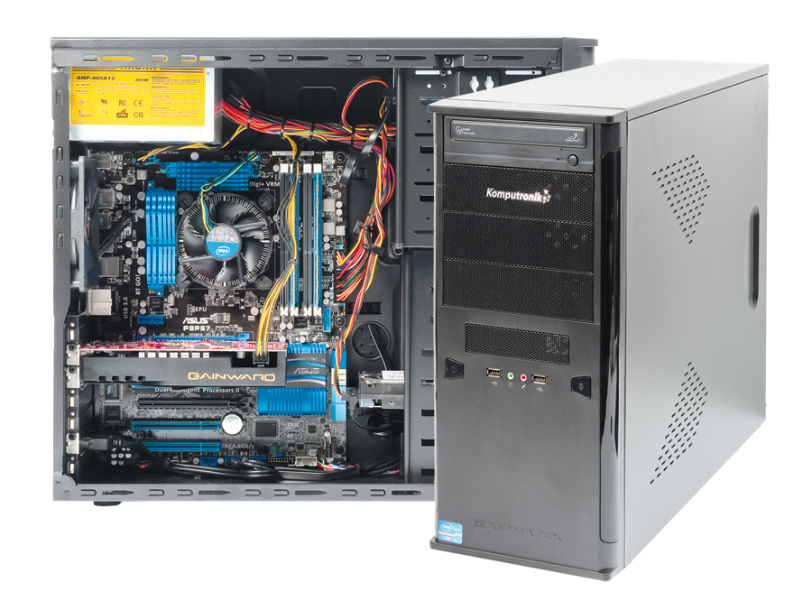 Komputer wykorzystuje czterordzeniowy układ Core i5 2400 z wbudowaną grafiką HD Graphics 2000. Producent zdecydował się na płytę Asus P8P67 z chipsetem P67, a więc bez obsługi tej grafiki. Zamiast tego w komputerze zamontowano kartę Gainward GeForce GTS 450 z 1 GB pamięci. Konfigurację uzupełniają m.in. 4 GB RAM i dysk 1 TB. Na tylny panel wyprowadzono aż 10 złączy USB (w tym dwa USB 3.0), a także eSATA, FireWire, a nawet bluetooth. Płyta ma jeszcze dwa dodatkowe porty USB 3.0, nie zostały one wyprowadzone na przedni panel.