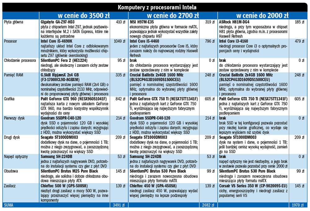 Do zmiany progów cenowych skłoniło nas kilka rzeczy. Po pierwsze, w poprzednich miesiącach komputery za 1500 zł były urządzeniami raczej do biura, a tam tak naprawdę wystarczyłby jakikolwiek sprzęt. Nowe zestawy za 2000 zł lepiej nadają się do gier – nawet najtańsze mają układy Intel Core lub AMD FX, a także karty graficzne przynajmniej ze średniej półki cenowej.