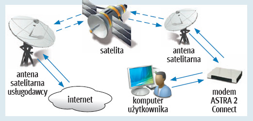 Wysyłany przez komputer użytkownika sygnał jest odbierany przez anteny SES ASTRA w Luksemburgu i przesyłany do globalnej sieci. Analogicznie wygląda droga powrotna. Dlatego nową usługę TP nazywamy dwukierunkową.