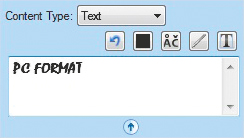 Na początek z rozwijanego menu Content Type wybierz opcję Text. Po wpisaniu tekstu możesz wybrać kolor czcionki, wstawić znak specjalny, otworzyć zbiór czcionek specjalnych (jeśli został zainstalowany), wybrać jedną z czcionek standardowych lub cofnąć wszystkie zmiany.