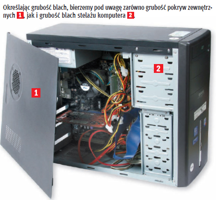 Od materiału obudowy zależy też stopień tłumienia odgłosów pracujących podzespołów. Jeśli blachy stelaża są zbyt cienkie, bardzo łatwo są przenoszone drgania ruchomych elementów komputera, obudowa często wpada w rezonans, słychać irytujące brzęczenie. Taki efekt nie występuje w przypadku obudów wykonanych z solidnej, grubej blachy.
