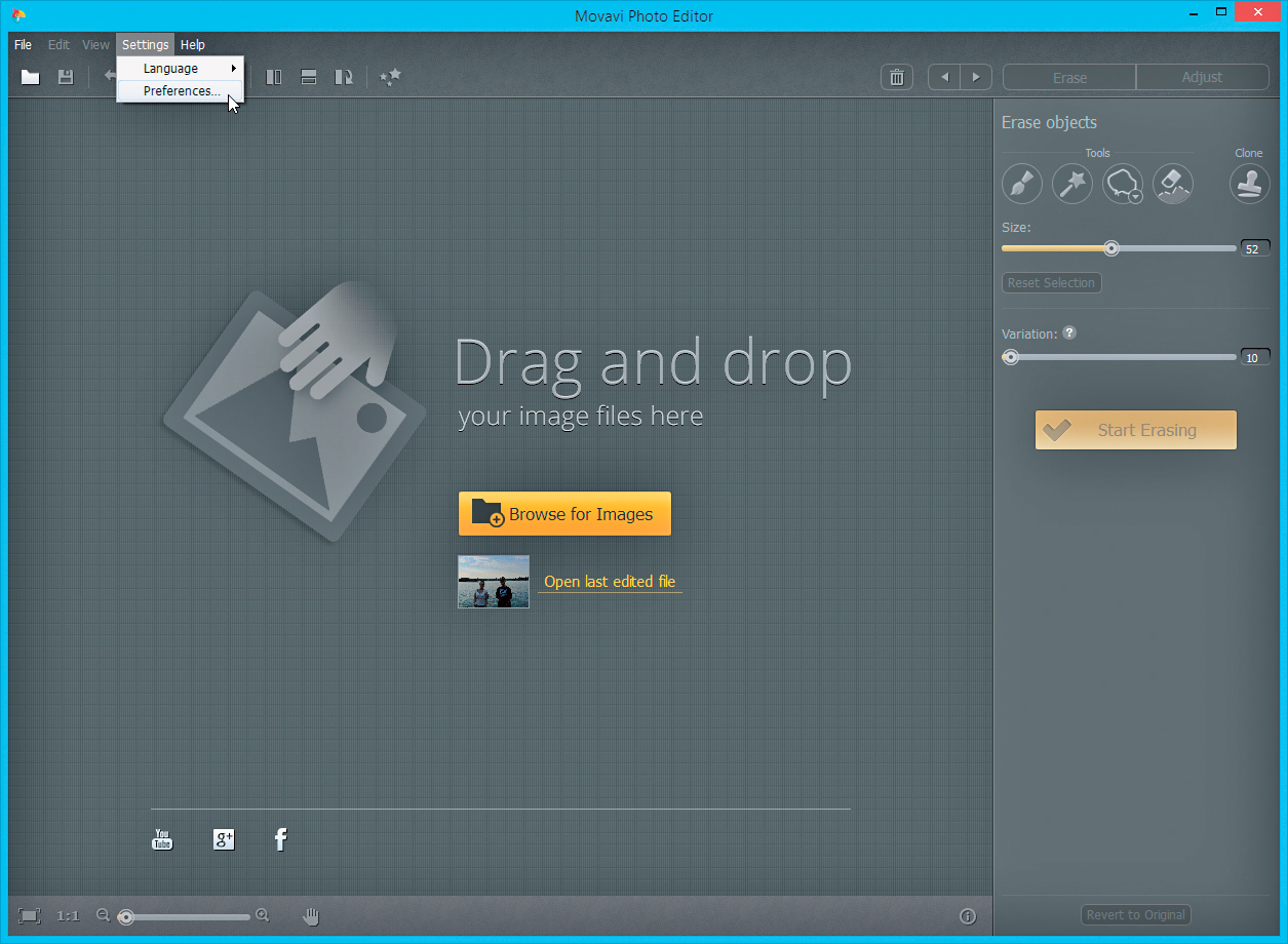 Zaznaczać obszar do wyczyszczenia możesz za pomocą pędzla, magicznej różdżki lub lassa. Za pomocą suwaka poniżej Brush size ustawisz parametry wybranego narzędzia, np. wielkość pędzla. Aby usunąć niepotrzebne zaznaczenie, wykorzystaj ikonę gumki. Narzędzie z symbolem stempla służy do powielania fragmentów zdjęcia. Za pomocą suwaka Variation ustawisz jakość zastosowanego efektu. Proces wymazywania uruchomisz, naciskając Start Erasing.