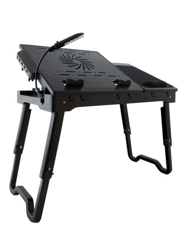 Oba stoliki sprawdzą się zarówno w trakcie podróży, jak i w domowym zaciszu. Wykonane z wysokiej jakości tworzywa gwarantują długą żywotność i odporność na uszkodzenia mechaniczne. Niewielkie wymiary i konstrukcja składana do praktycznie jednolitej, płaskiej bryły umożliwiają łatwy transport lub przechowywanie (np. pod łóżkiem). Ich istotną cechą są dwa, niezależnie regulowane blaty, a także wbudowany hub USB i lampka LED. To właśnie dzięki tym rozwiązaniom zapewniony jest wysoki komfort obsługi notebooka.