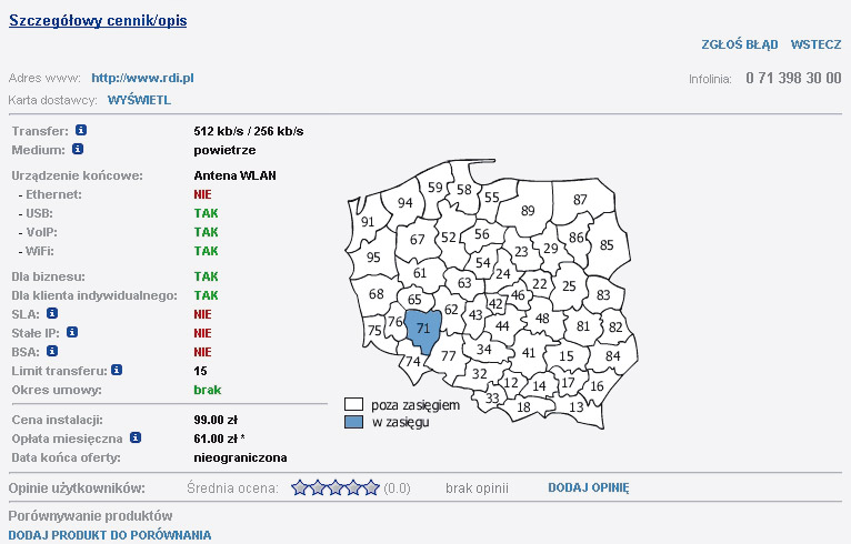 W porównywaniu samych łączy internetowych dobrze sprawdza się także serwis www.wybieramy.net. Możesz wyszukiwać wśród propozycji 18 operatorów. Ciekawą opcją jest zestawienie obok siebie szczegółów kilku dowolnie wybranych ofert.
