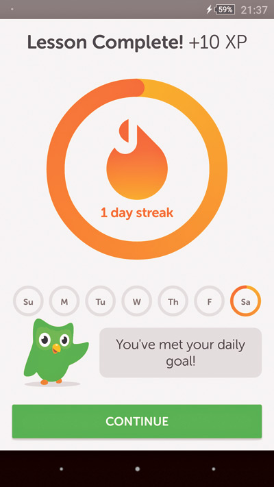 Aplikacja z kompletnymi darmowymi kursami językowymi. Dla użytkowników polskojęzycznych dostępny jest tylko kurs języka angielskiego, ale osoby mówiące dobrze po angielsku mogą korzystać aż z 13 kursów, wśród których są zarówno popularne języki, np. niemiecki czy hiszpański, ale i te mniej popularne, jak szwedzki czy irlandzki. Jeśli nie masz pewności, od czego zacząć, możesz zrobić test, który pomoże aplikacji dobrać poziom odpowiedni do twoich umiejętności. Ćwiczenia składające się na kurs są urozmaicone, obejmują także zadania z pisania oraz układania zdań z rozsypanych słów. Wszystkie wprowadzane słowa i zwroty są odczytywane przez lektora. Każde słówko można kliknąć, aby zobaczyć tłumaczenie, ułatwieniem jest też mechanizm ustalania tempa odczytywania tekstu. Zaletą aplikacji jest system śledzenia postępów i motywowania użytkownika. Duolingo przypomni o konieczności zrobienia kolejnej lekcji i powiadomi o zrealizowaniu wyznaczonego celu. Postępy są synchronizowane z kontem użytkownika, więc ćwiczenia można kontynuować na innych urządzeniach.