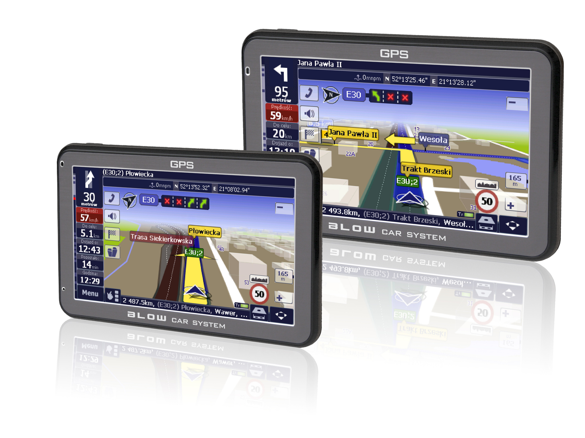 Oferta nawigacji BLOW obejmuje urządzenia wielkości 3,5, 4,3, 5, 6 i 7 cali. Najnowocześniejsze 42-kanałowe odbiorniki GPS firmy SiRF Star, w połączeniu z szybkimi procesorami MediaTek, zapewniają wyjątkową dokładność ustalania położenia. Urządzenia pozwalają też szybko ustalić pozycję pojazdu podczas jazdy. Nawigacje BLOW mogą służyć jako zestaw głośnomówiący, umożliwiając obsługę zaimportowanej, pełnej książki adresowej telefonu i historii połączeń. W czasie jazdy nawigacja inteligentnie wybiera najważniejsze komunikaty wyciszając, w zależności od potrzeb, muzykę, informacje nawigacyjne, bądź rozmowy telefoniczne. W zależności od wybranego modelu mogą one też pełnić rolę odtwarzacza audio-wideo oraz transmitera FM umożliwiającego transmisję dźwięku do samochodowego systemu nagłośnienia.