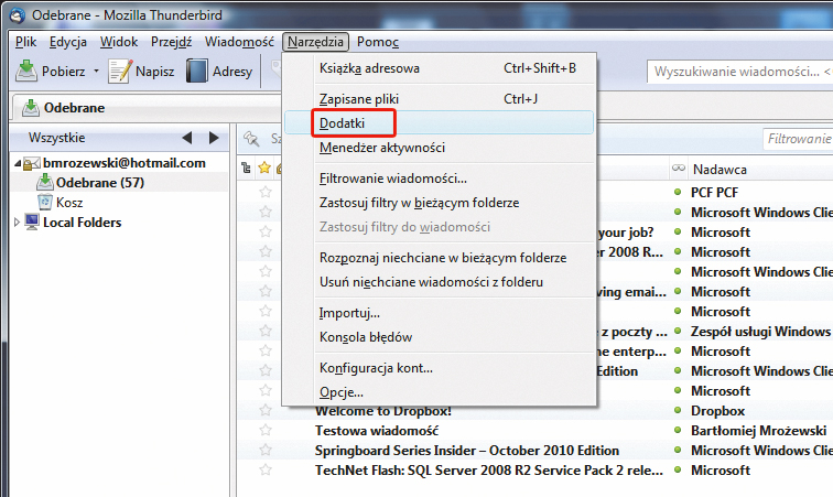 Po uruchomieniu Thunderbirda kliknij w menu Narzędzia opcję Dodatki. W oknie Dodatki wpisz w pole wyszukiwania Enigmail i naciśnij klawisz [Enter]. Gdy system znajdzie dodatek, naciśnij znajdujący się obok przycisk Dodaj do programu Thunderbird, a w następnym oknie Zainstaluj. Po zakończeniu instalacji zrestartuj Thunderbirda. Wtyczka wymaga także instalacji programu GnuPG w wersji do Windows, który znajdziesz na stronie www.gnupg.org/download, w sekcji Binaries.