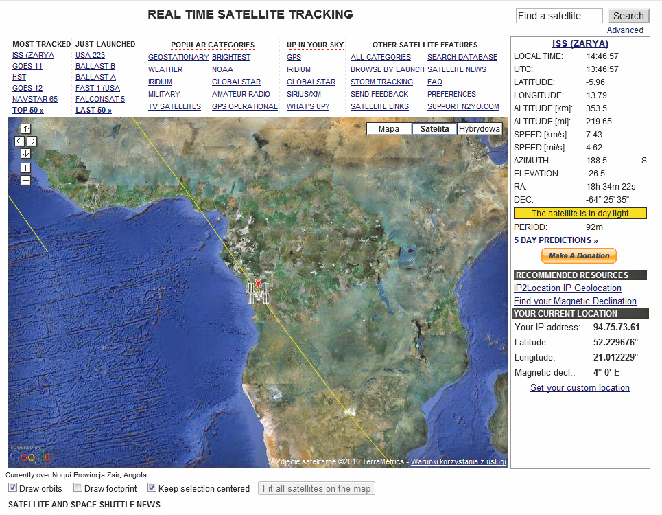 Wiele zdjęć z Kosmosu można znaleźć na stronach internetowych agencji kosmicznych. Dobrym punktem wyjścia jest serwis z misjami NASA, zarówno aktualnymi, jak i historycznymi. Jeśli jesteś zainteresowany najdalszymi misjami NASA do planet zewnętrznych Układu Słonecznego, bogatą kolekcję zdjęć znajdziesz na stronie ciclops.org, z kolei najlepszą kolekcję zdjęć z misji księżycowych ma strona apolloarchive.com. Z internetu można dowiedzieć się także o położeniu obiektów nieujmowanych w omówieniach Kosmosu, które można obserwować z Ziemi. Mowa oczywiście o satelitach. Najjaśniejszym sztucznym obiektem w Kosmosie jest Międzynarodowa Stacja Kosmiczna (ISS). Jej pozycję możesz sprawdzić w czasie rzeczywistym na stronie isstracker.com. Jeśli interesują cię także inne satelity, np. szpiegowskie, ich pozycję aktualizowaną w czasie rzeczywistym znajdziesz na stronie www.n2yo.com.