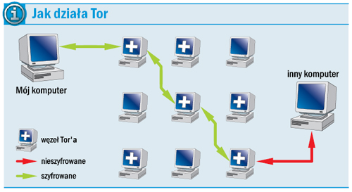Potrzebujesz dobrego rozwiązania, które ukryje twoją obecność na poszczególnych serwerach i da ci pewność anonimowości. W takim momencie warto skorzystać z serwera proxy, który będzie pośredniczył w twoim połączeniu internetowym. Jednak o szybkie, anonimowe i, co najważniejsze, darmowe proxy jest coraz trudniej. Dlatego warto użyć specjalnej sieci serwerów zwanej Tor (The Onion Routing), która jest oferowana bezpłatnie przez osoby prywatne i instytucje. Każde połączenie nawiązywane przez sieć Tor przechodzi przez kilka losowo wybranych komputerów i jest dodatkowo szyfrowane. Dzięki temu komunikacja odbywa się anonimowo i namierzenie użytkownika staje się bardzo trudne. Tor utrudnia także administratorom sieci (z których korzystasz) nadzorowanie twojej aktywności.