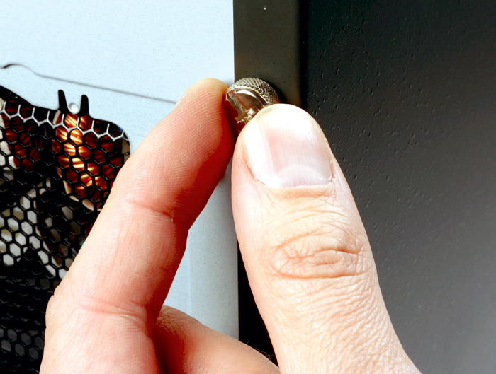 Z tyłu obudowy odszukaj cztery śruby mocujące zasilacz, a następnie je odkręć. Uważaj przy tym, by odkręcony zasilacz nie spadł do środka obudowy, bo może uszkodzić inne komponenty. Najlepiej podtrzymać go od dołu ręką. Po odkręceniu śrub wyjmij zasilacz z obudowy.