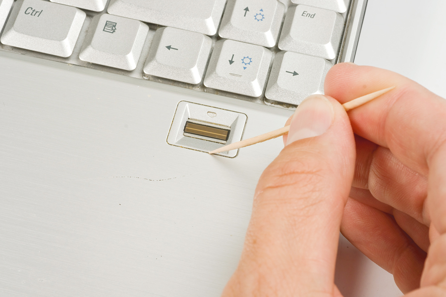 Czyszczenie rozpocznij od odkurzania za pomocą zwykłego odkurzacza oraz szczotki z długim włosiem. W ten sposób na sucho usuniesz kurz z powierzchni, a także wszelkich szczelin. W przypadku laptopa szczególnie dokładnie odkurz klawiaturę, a w komputerze stacjonarnym – wylot powietrza z zasilacza. Niektóre miejsca możesz też oczyścić niewielkim pędzlem ze sztywnym włosiem.
