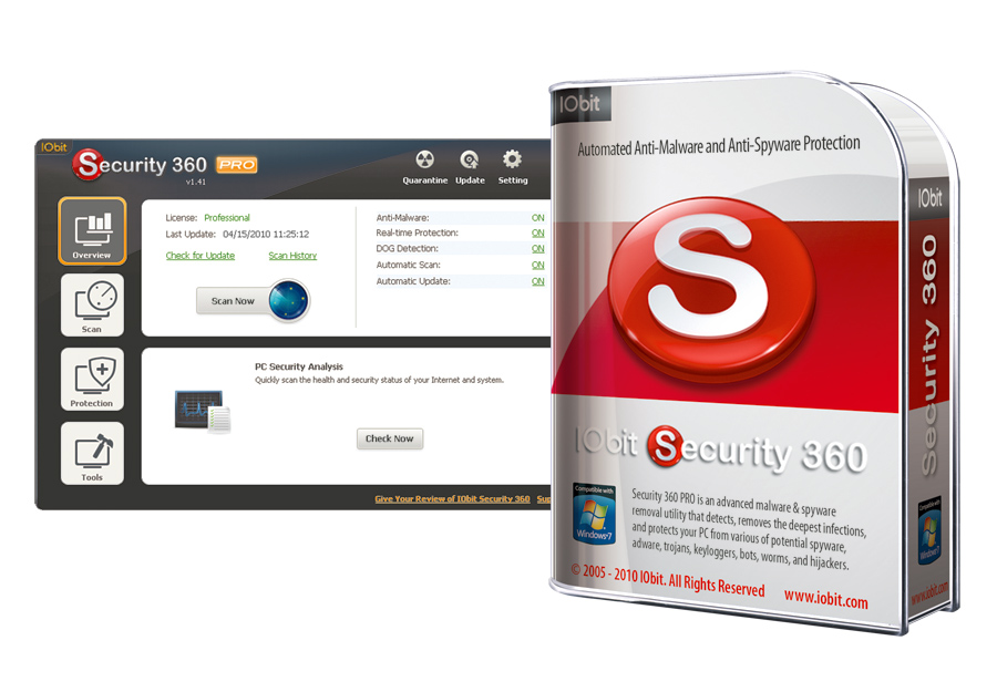 Aplikacja zabezpieczy twój komputer przed atakami modułów spyware, adware, trojanów, botów i robaków, korzystając z podwójnego mechanizmu Dual-Core oraz heurystycznej metody wykrywania zagrożeń. Aktualizacje baz definicji złośliwego kodu są regularnie pobierane z internetu. Oprócz walki ze złośliwym oprogramowaniem Security 360 PRO zatroszczy się o twoją prywatność, usunie poufne informacje z katalogu podręcznego, pliki tymczasowe, „ciasteczka” i historię odwiedzanych stron WWW.