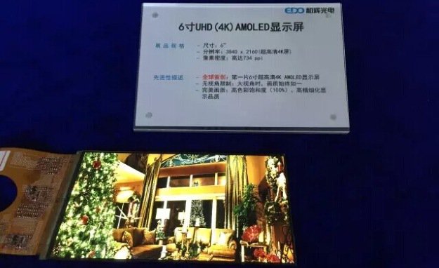 Firma Everdisplay (znana również jako Hehui Optoelectronics) zaprezentowała 6-calowy panel AMOLED o rozdzielczości 4K.