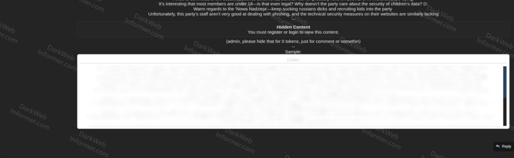 Włamywacz, korzystając z okazji, przekazał, iż większość członków partii ma mniej niż 18 lat. Nie przeszkodziło mu to jednak w zamieszczeniu danych dzieci w sieci, odpowiedzialność za to zdarzenie w całości zrzucając na barki Nowej Nadziei, która to pokpiła kwestie bezpieczeństwa i umożliwiła przeprowadzenie na siebie trzech ataków z rzędu. Z wywodu poisonivy3 wynika, że dostęp do serwerów udało się uzyskać za pośrednictwem techniki phishingowej.