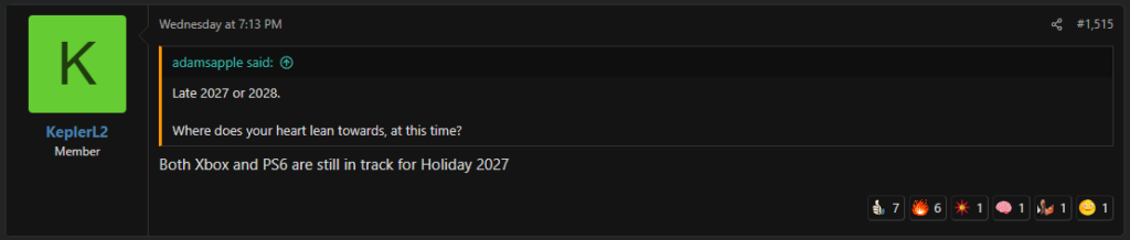 Jak to wreszcie jest z tym PS6 – zobaczymy je w przyszłym roku, czy znacznie później? Mimo że wypowiedzi jednej z osób zaznajomionych z produkcją konsoli i planami wydawniczymi Sony wskazują na to, iż drugi z przedstawionych scenariuszy jest bardziej prawdopodobny, tak ostatnie doniesienia ze strony sprawdzonego leakera w postaci KepleraL2 pozwalają sądzić, iż zarówno PlayStation 6, jak i wciąż oficjalnie nieujawniony handheld Projekt Canis, ukażą się w sezonie bożonarodzeniowym przyszłego roku. Pytaniem więc pozostaje, komu powinniśmy wierzyć?