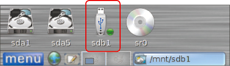 Sprawdź na pulpicie, jak się nazywa potrzebny dysk. W naszym przykładzie partycja C:\ to sda1, partycja D:\ to sda5, karta pamięci aparatu mmcblk0p1, nagrywarka – sr0, a pamięć flash sdc1. Wróć do okna dialogowego danego programu. Odszukaj na liście nazwę dysku i kliknij dwukrotnie jego ikonę. W ten sposób uzyskujesz dostęp do jego zasobów i możesz już otwierać lub zapisywać pliki.