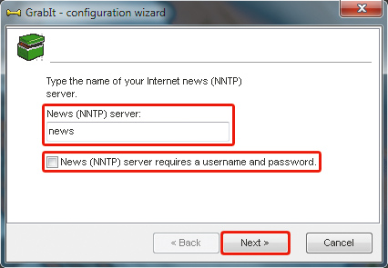 Pierwszym oknem, które pojawi się na ekranie, jest okno kreatora konfiguracji: GrabIt – configuration wizard. W oknie tym, w polu News (NNTP) server musisz wpisać adres serwera grup dyskusyjnych. Listę działających polskich serwerów usenetowych opublikowaliśmy w ramce „Adresy serwerów NNTP”. Po wpisaniu adresu serwera kliknij Next. Jeśli wpisany przez ciebie serwer wymaga uwierzytelnienia, zaznacz pole wyboru News (NNTP) server requires a username nad password. W naszym warsztacie zakładamy, że nie jest to konieczne, gdyż korzystasz z ogólnodostępnych, publicznych serwerów NNTP.