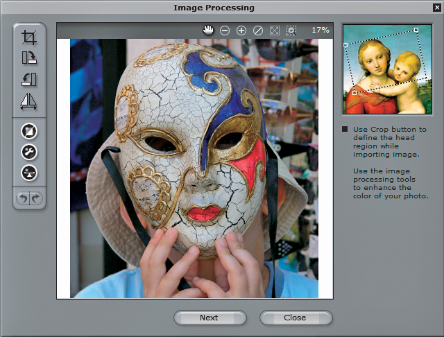 Kliknij przycisk Preview. Następnie, poruszając kursorem myszki, obserwuj w oknie Face Orientation, jak animuje się zdjęcie w oknie głównym, widocznym pod spodem. Jeśli efekt jest dobry, kliknij OK.