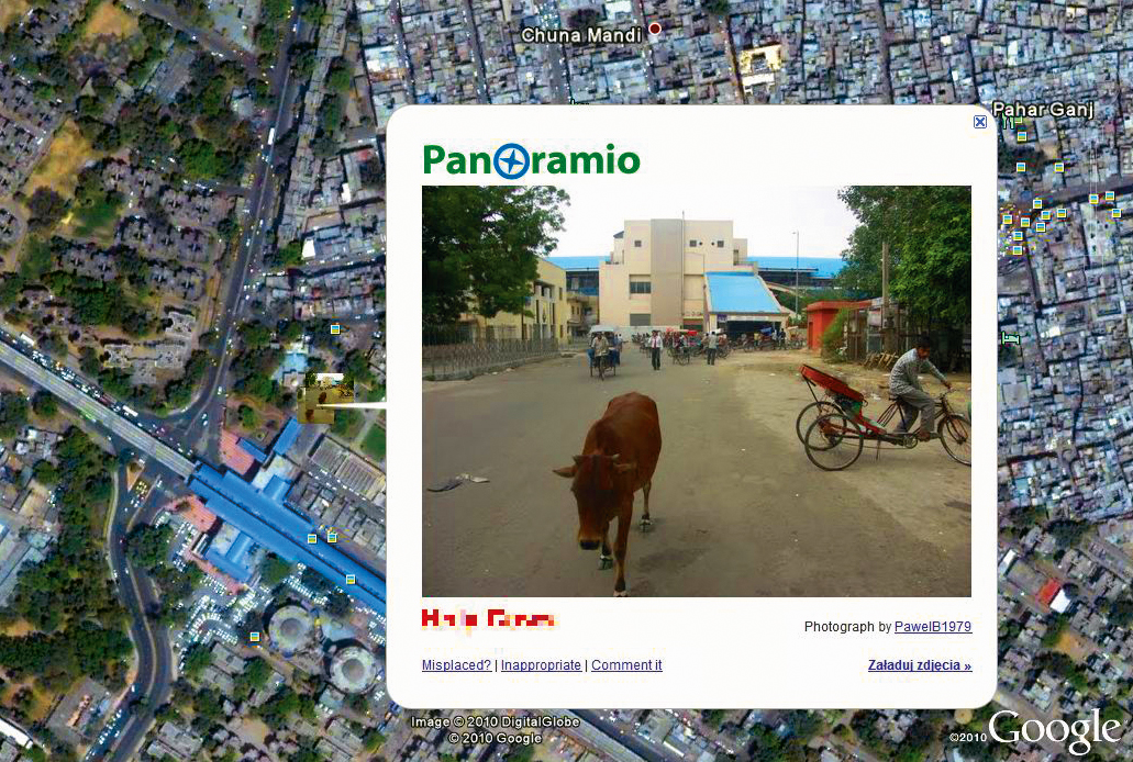 Panoramio wyświetli miniatury dodanych przez ciebie zdjęć. Możesz je wyświetlić na mapie. W tym celu kliknij odnośnik na mapie. Po chwili zobaczysz fotografie, które można oglądać na kilka sposobów. Zawsze widać zdjęcie oraz mapę ze wskazaną lokalizacją.