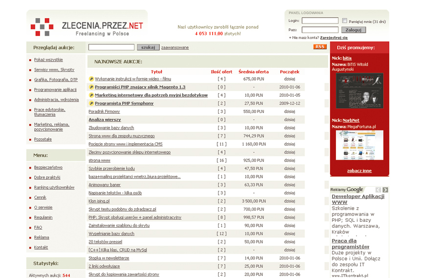 Jeżeli jesteś wolnym strzelcem i poszukujesz dorywczej pracy, powinieneś odwiedzić ten serwis. Codziennie trafiają tu dziesiątki zleceń dla webmasterów, programistów, fotografów, grafików, tłumaczy i innych wolnych strzelców. Oferty prezentowane są w formie aukcji, gdzie zainteresowani wykonawcy proponują swoją cenę za wykonanie oraz czas realizacji danej usługi. Zleceniodawca może wybrać dowolną ofertę, sugerując się najniższą proponowaną ceną, pozytywnymi komentarzami i referencjami lub udokumentowanym portfolio freelancerów. W większości przypadków o wyborze zwycięzcy decyduje jednak doświadczenie zawodowe. Im więcej mamy na swoim koncie dobrze wykonanych prac i zadowolonych klientów, tym większa szansa na nowe zlecenie.