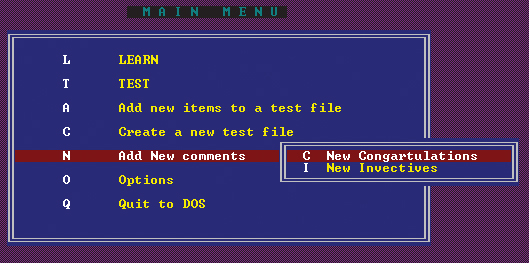 Weteran wśród programów do nauki języków. Pierwsza wersja tej aplikacji trafiła na komputery w 1990 roku – to ponad 20 lat temu! Program ułatwia naukę angielskich słówek przyporządkowanych do kilku kategorii tematycznych. Oprócz tego po zakończeniu lekcji możemy sprawdzić swoją wiedzę za pomocą wbudowanego testu sprawdzającego. Dużą zaletą programu jest możliwość rozbudowywania standardowej bazy słówek o nowe pozycje za pomocą wbudowanego edytora. Z oczywistych względów program znacząco odstaje wyglądem od dzisiejszych aplikacji, ale wciąż stanowi przydatne narzędzie, zwłaszcza do powtórzenia prostego słownictwa z języka angielskiego. Program nie jest aplikacją przeznaczoną na systemy Windows, ale zadziała bez problemu w Windows od wersji 95 po XP dzięki obecności podsystemu DOS. Do działania w nowszych wersjach – Vista i Windows 7 – potrzebne jest doinstalowanie programu DOSBox.