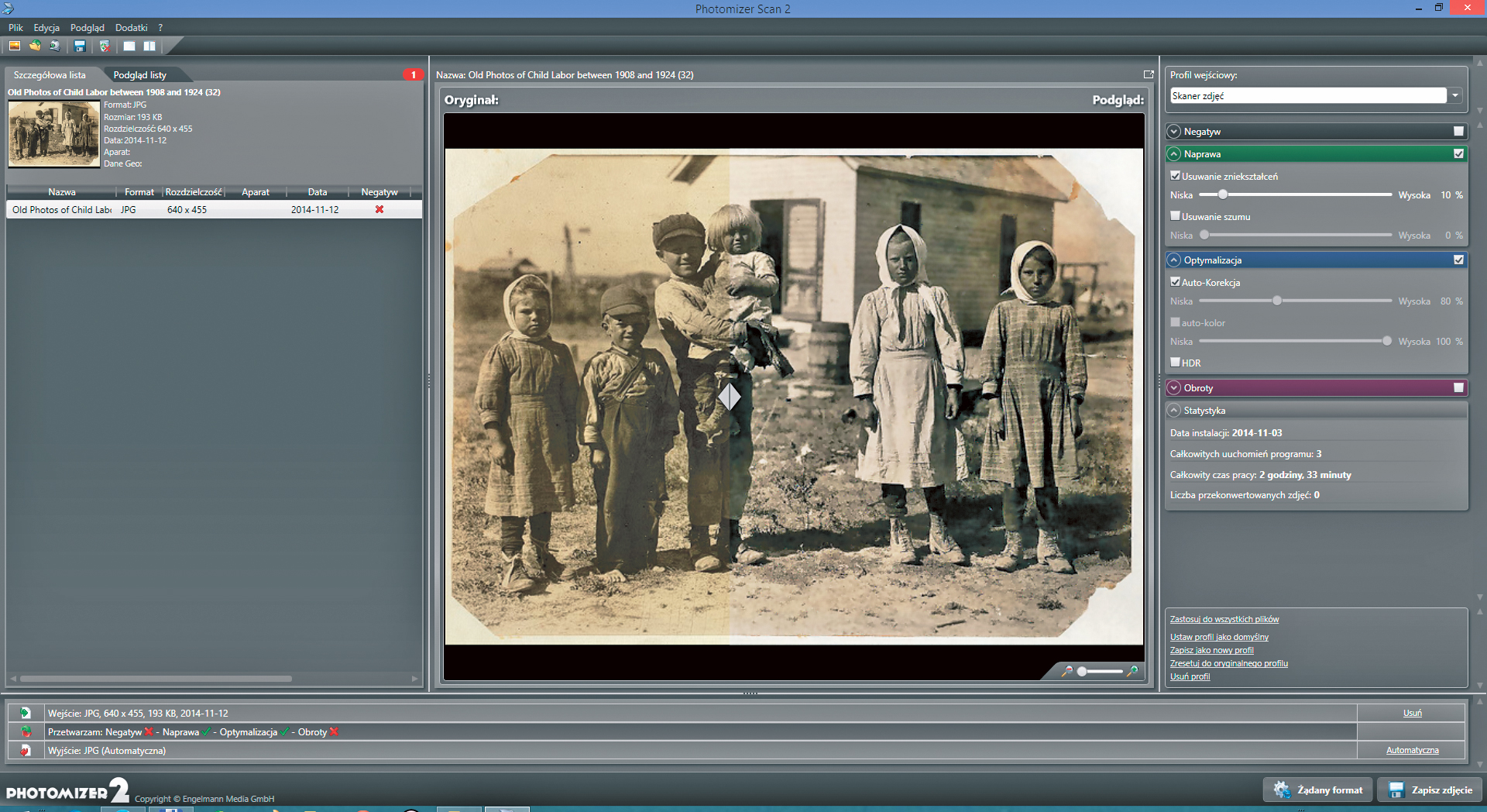 Pełna wersja programu Photomizer Scan 2, którą znajdziesz na naszej płycie, skierowana jest do posiadaczy starych, zeskanowanych fotografii, wymagających cyfrowej naprawy. Korzystając z tego narzędzia usuniesz typowe wady zdjęć, dodasz im jaskrawości oraz nasycisz wyblakłe kolory.