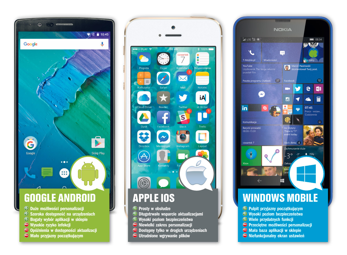 W miarę używania rosnąć będzie twoje przywiązanie do systemu za sprawą biblioteki kupionych aplikacji, muzyki i filmów oraz ważnych dla ciebie danych trzymanych w usługach chmurowych (np. zdjęć). Ich przenoszenie do innego systemu rzadko przebiega bez kłopotów. Dlatego decyzja o związaniu się z konkretnym OS-em to wybór na lata. Warto wcześniej poznać mocne i słabe strony każdego z rozwiązań: cechy interfejsu, dostępność aktualizacji czy poziom bezpieczeństwa.