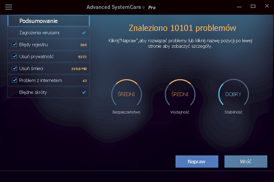 W końcu stwierdzisz, że brakuje miejsca na nowe aplikacje, komputer uruchamia się coraz wolniej albo w przeglądarce pojawiła się niechciana strona startowa. Choć można temu samodzielnie zapobiec, stale monitorując stan rejestru systemowego, kontrolując zawartość dysku twardego oraz ostrożnie podchodząc do instalacji programów, nie jest to komfortowe ani proste rozwiązanie. Z pomocą mniej zaawansowanym użytkownikom przychodzi Advanced SystemCare 9 Pro.